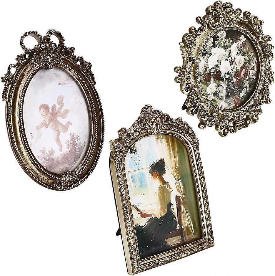 3 Pcs 3 Styles Vintage Resin Frames Gold Ornate Picture Frames Mini Frames for Tabletop Display Wall Hanging Home Decor