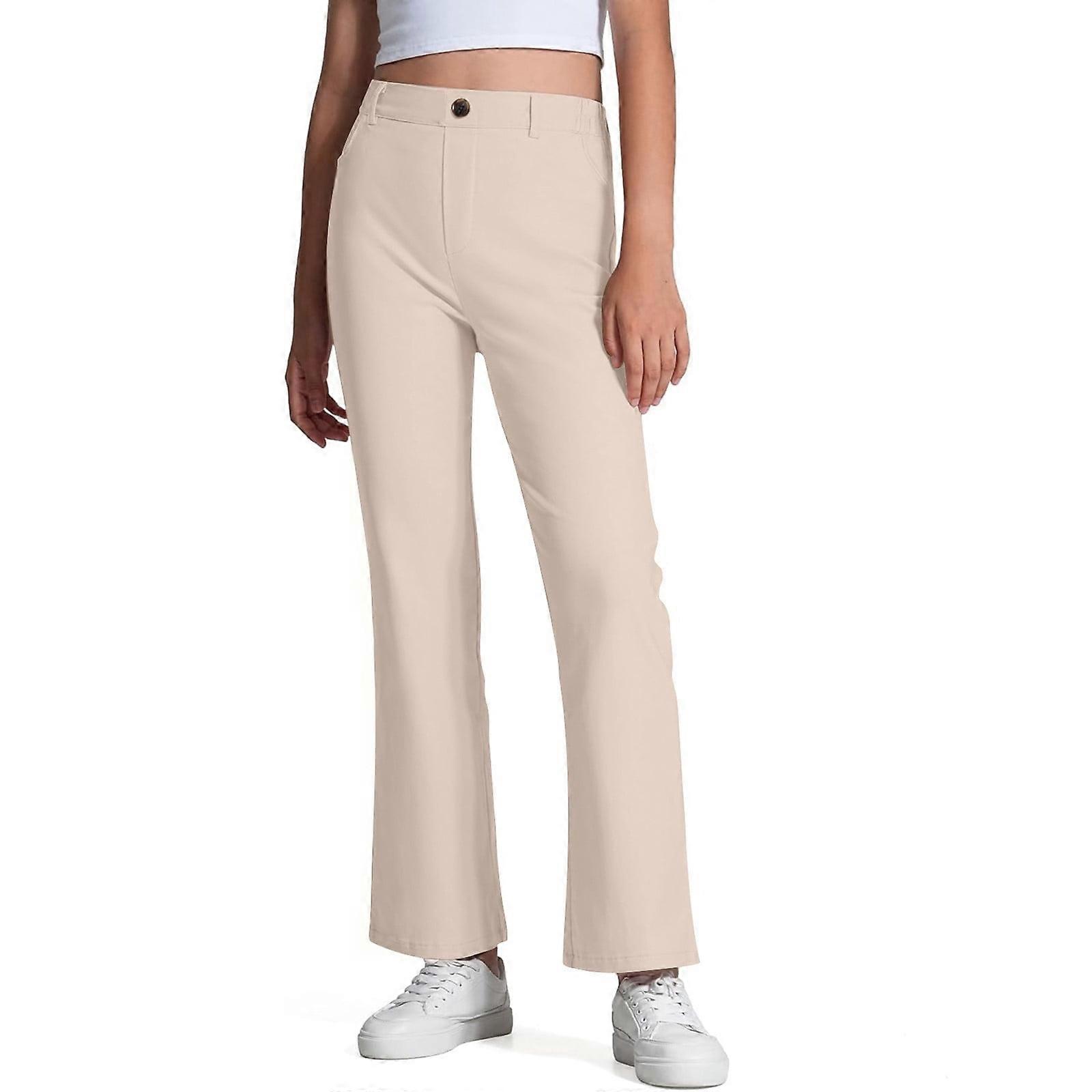 Solid Color Stretchy High-Waisted School Uniform Pants for Kids, Beige, 7-8 Years, Compatible with School Dress Code