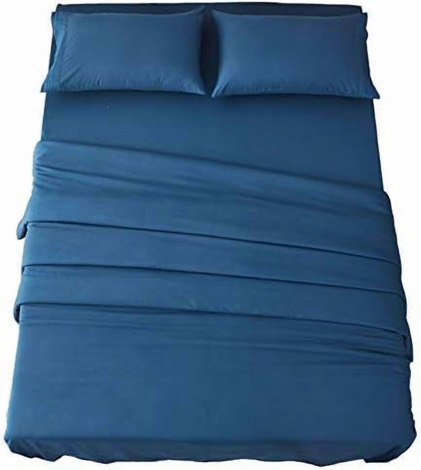 Bed Sheet Set Super Soft Microfiber 1800 Thread Count Luxury Egyptian Sheets 18-Inch Deep Pocket Wrinkle and Hypoallergenic-3 Piece(Twin, Navy Blue)