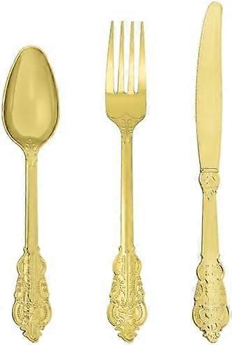 150-Pc Gold Plastic Silverware Set – Heavy Duty Disposable Cutlery (50 Forks, 50 Spoons, 50 Knives), Vintage Design for Weddings, Parties,