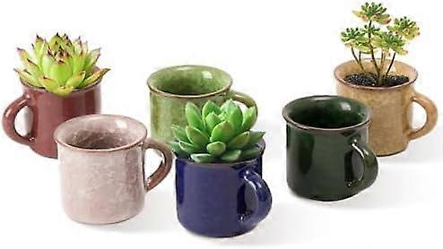 2" Ceramic Succulent Planter Set of 6, Ice Crack Glaze Porcelain Pots with Drainage & Handles, Tiny Cactus Planters for Home/Office – Compatible