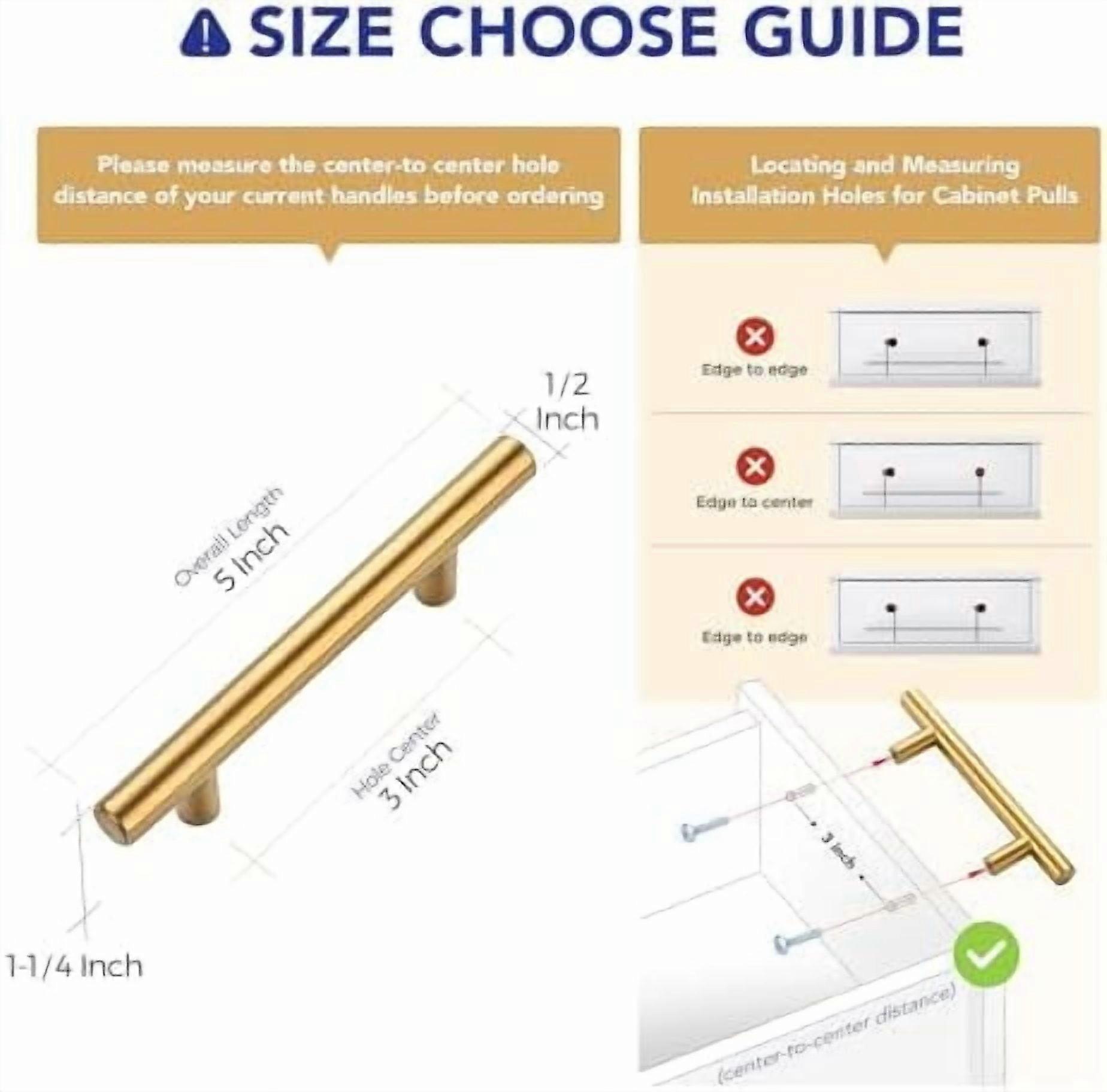6 Pack 5 Inch Cabinet Pulls Brushed Brass Stainless Steel Kitchen Drawer Pulls Cabinet Handles 5”Length, 3” Hole Center
