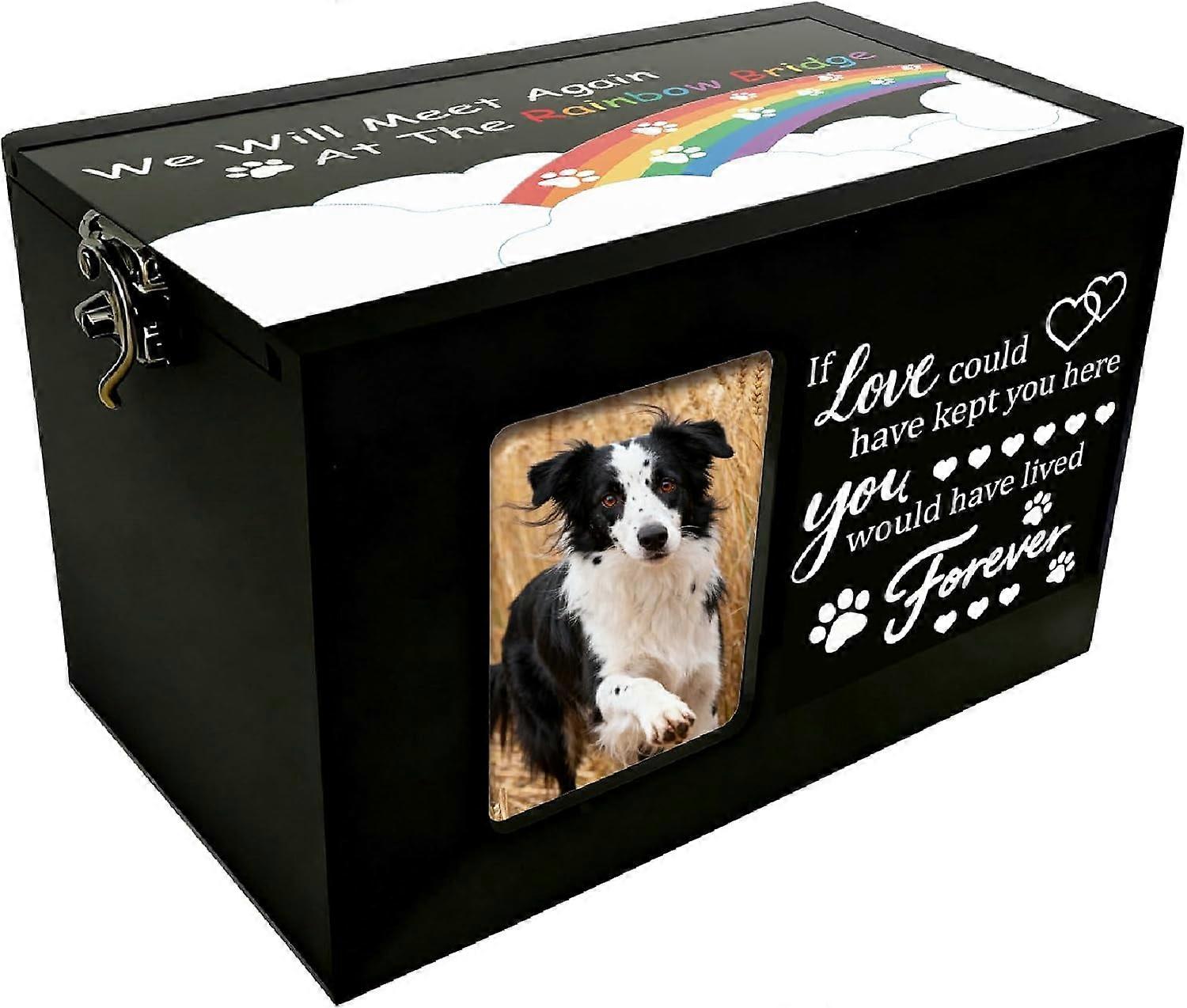 Rainbow Pet Urn Pet Memorial Box for Ashes Rainbow Bridge Wood Rectangle Storage Containers Cremation Urns with oto Frame