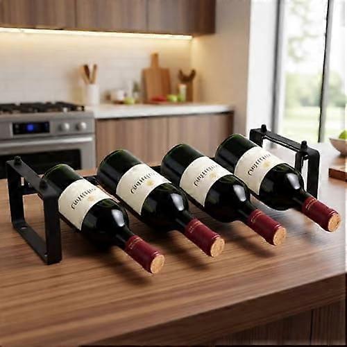 Stackable 4-Bottle Wine Rack – Compact Metal Wine Holder for Countertop, Cabinet, Pantry, Bar, Small Spaces (1-Tier, Black)