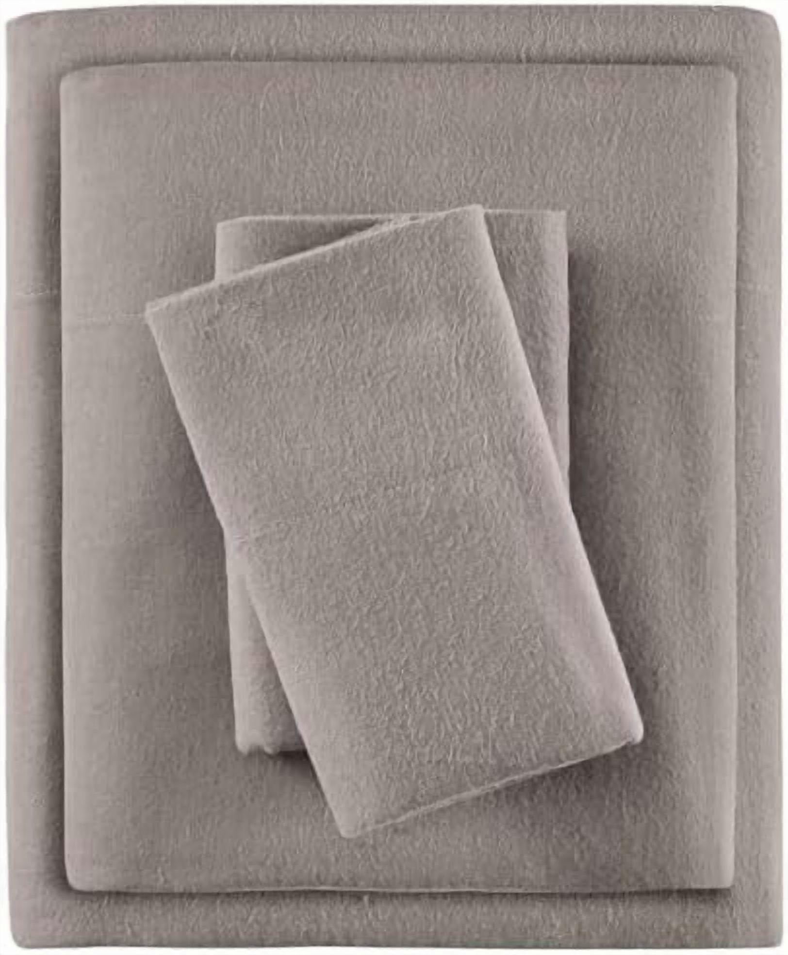 True North by Cozy Flannel Warm 100% Cotton Sheet - Novelty Print Animals Stars Cute Ultra Soft Cold Weather Bedding Set, Full, Grey Solid 4 Piece