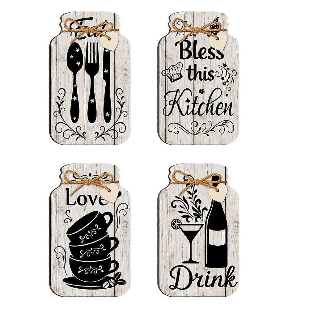 PH 4pcs Kitchen Wall Decor Eat Drink Love Less This Kitchen Wood Sign Jar Shaped Kitchen Wall Hanging Plaques Rustic Home Decor Farmhouse Board