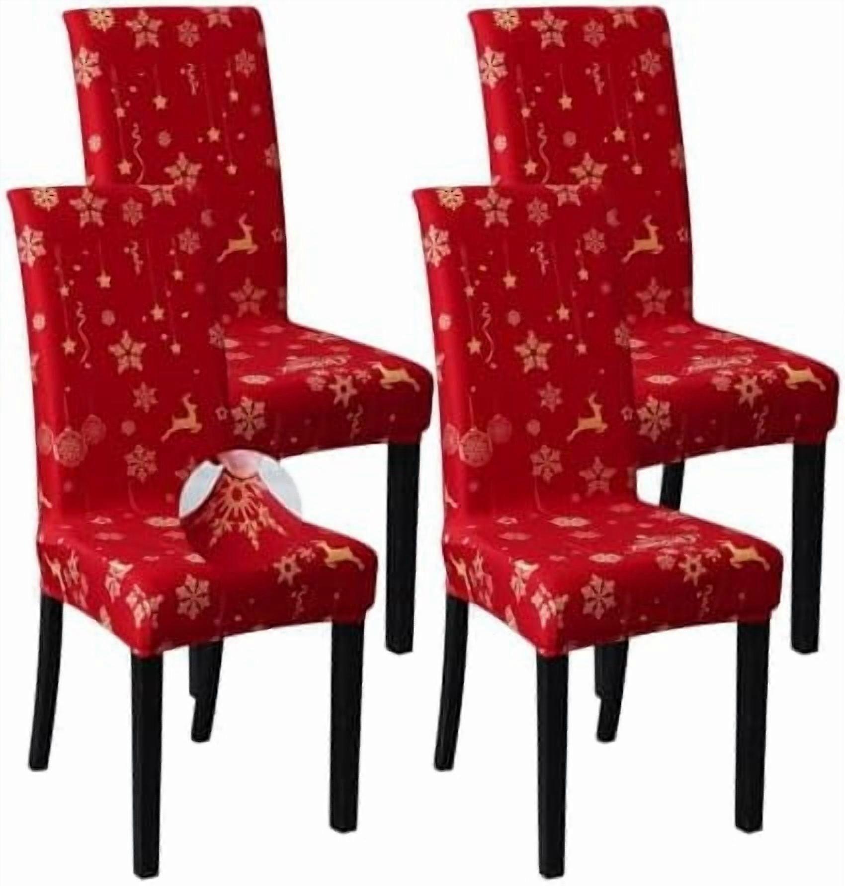 Christmas Chair Covers Set of 4, Stretch Spandex Slipcovers Compatible with Parsons Chairs, Washable Dining/Kitchen Decor