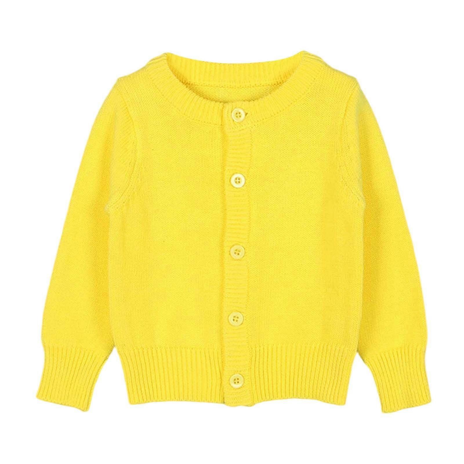 Girls Sweaters Solid Color Long Sleeve Round Neck Button Knit Cardigans Tops Comfortable Casual Daily Party Photoshoot Coat,Yellow2,4-5 Years