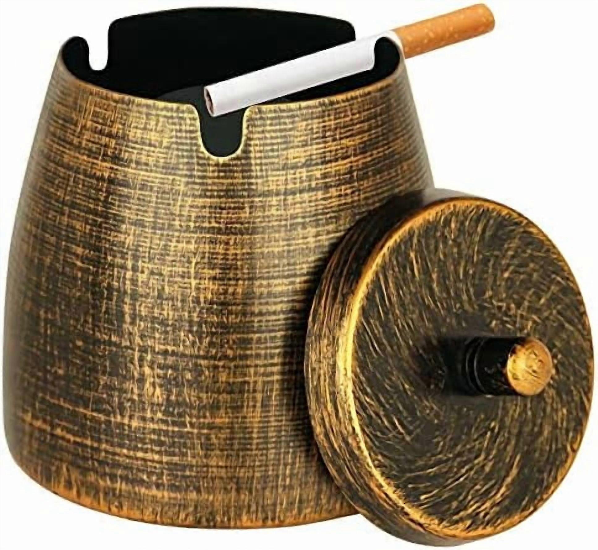 Small Retro Odorless Ashtray with Lid for Cigarettes Outdoor Rainproof,Metal Decorative Ashtray for Patio Outside Home Indoors Table Decor,Copper