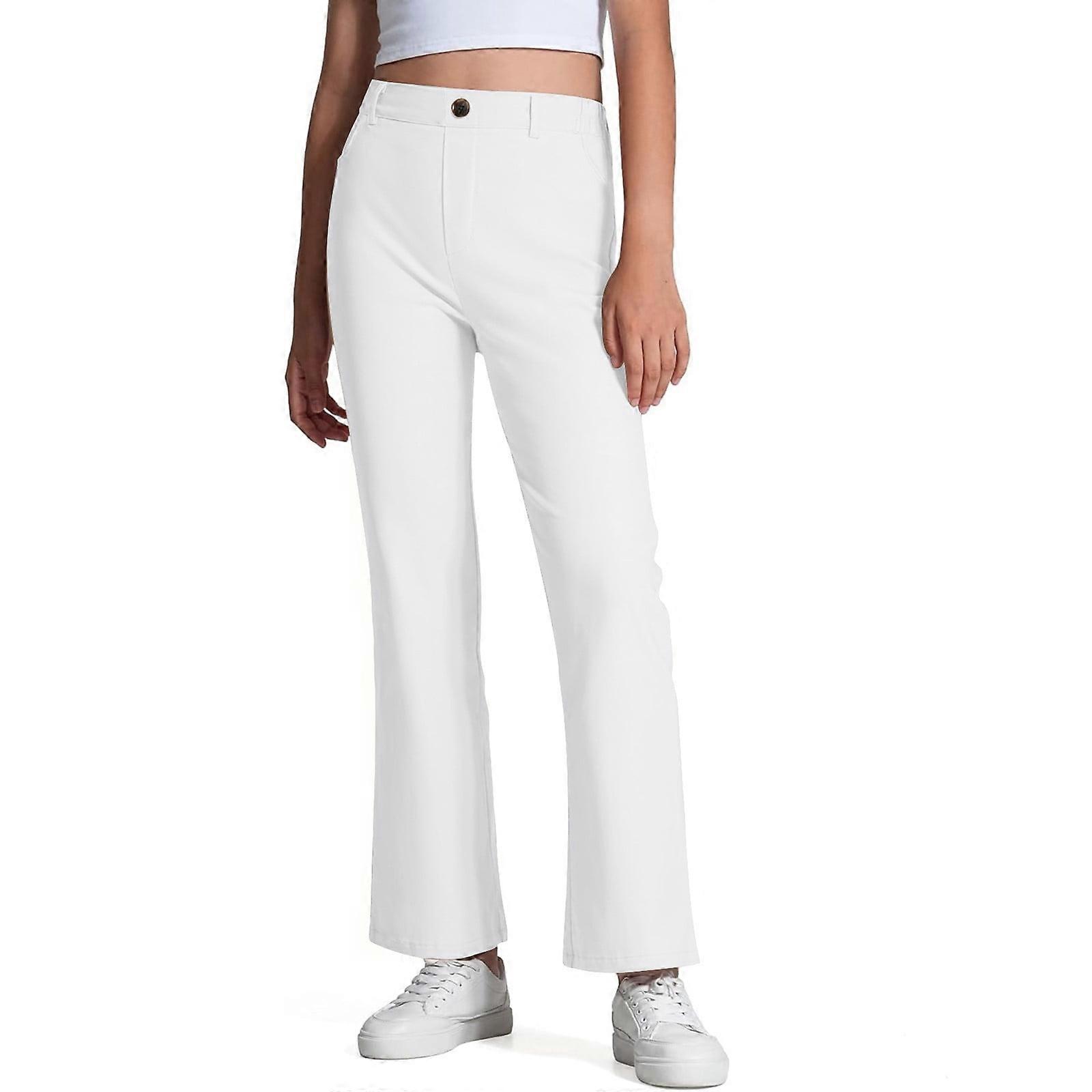 Girls Uniform Pants Fall Winter Solid Color High Waist Straight Trousers Kids Stylish Climbing Hiking Camping Cycling Pants,White,15-16 Years