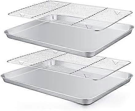Stainless Steel Baking Pan with Rack Set (2 Pans + 2 Racks), 12.5" x 9.5", Dishwasher Safe, Mirror Finish, Non-Toxic – Compatible with Toaster Oven