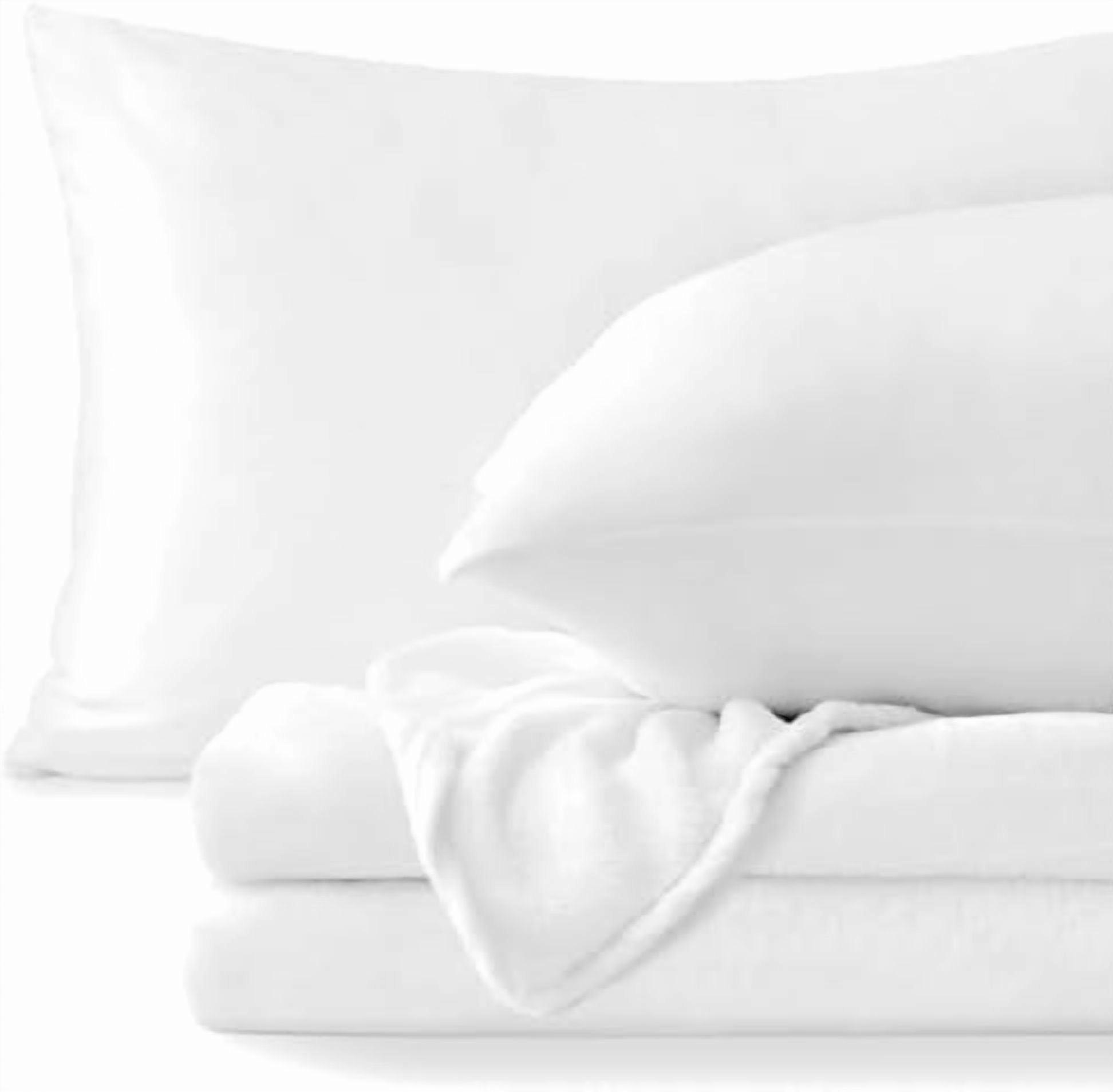 Flannel Sheets Full Size Bright White - Super Soft Fleece Sheets Set Fluffy Extra Plush, 4 Piece(Include Fitted Sheet, Flat Sheet, 2 Pillowcases)