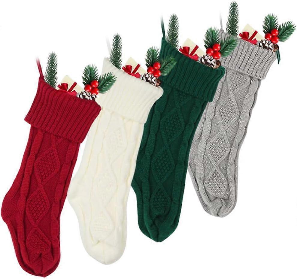 4 Colors Multi Color Christmas Stockings Chunky Knitted Christmas Stockings Bulk Plain Color Large Size Festival Decorations Multi-color