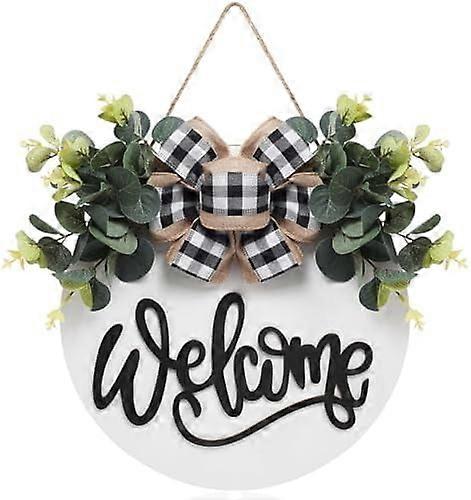 Farmhouse Welcome Sign, 30cm Round Wooden Wall Decor for Indoor/Outdoor Porch – White