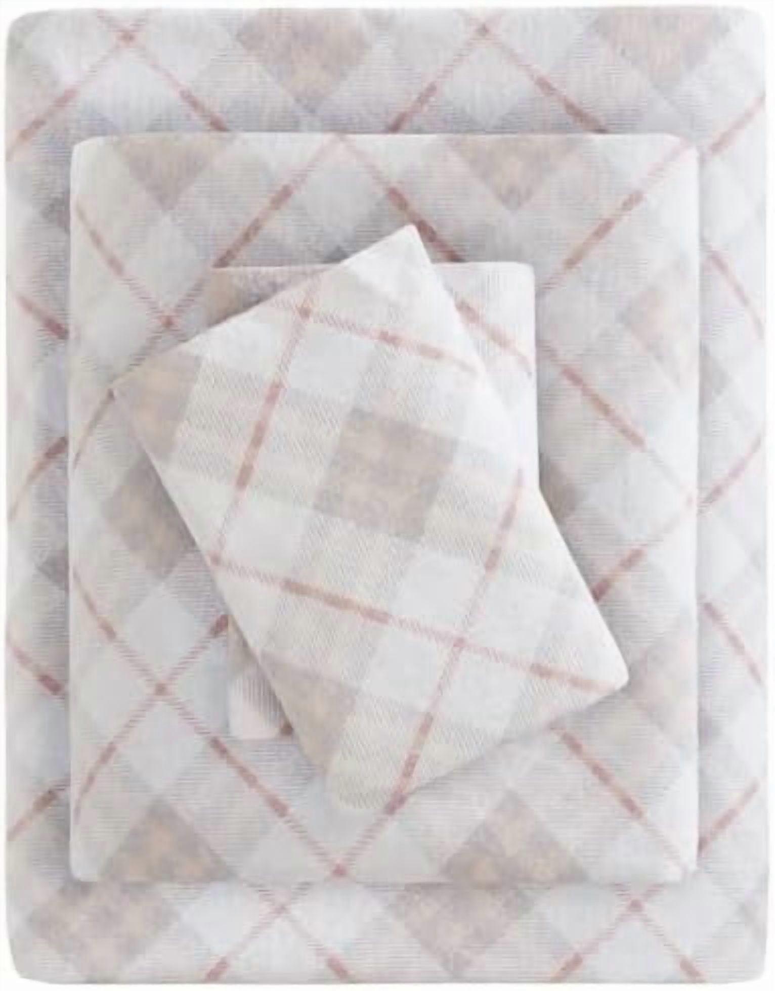 True North by Cozy Flannel Warm 100% Cotton Sheet - Novelty Print Animals Stars Cute Ultra Soft Cold Weather Bedding Set, Full, Pink Plaid 4 Piece
