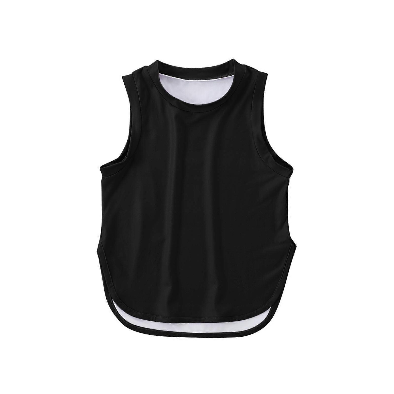 Kids' Solid Quick-Dry Sleeveless Tank Tops, Split Hem – Gym/Yoga/Running/Dance – Compatible with 4-5Y