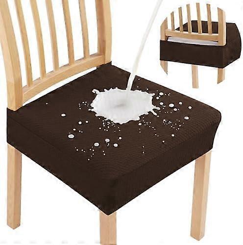Waterproof Seat Covers for Dining Room Chairs Set of 4, Stretch Jacquard Removable Washable Chair Seat Slipcovers Protector, No Rear Covers, Brown