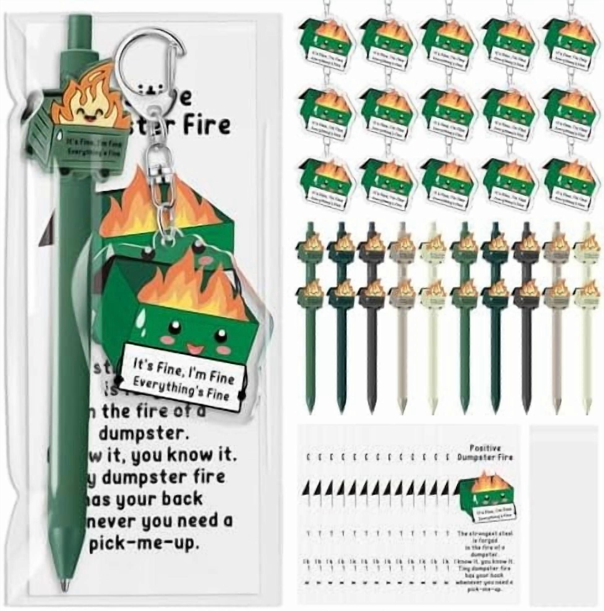 30-Pack Dumpster Fire Pens & Acrylic Keychains – Funny Desk Accessories, Compatible with Office Gifting