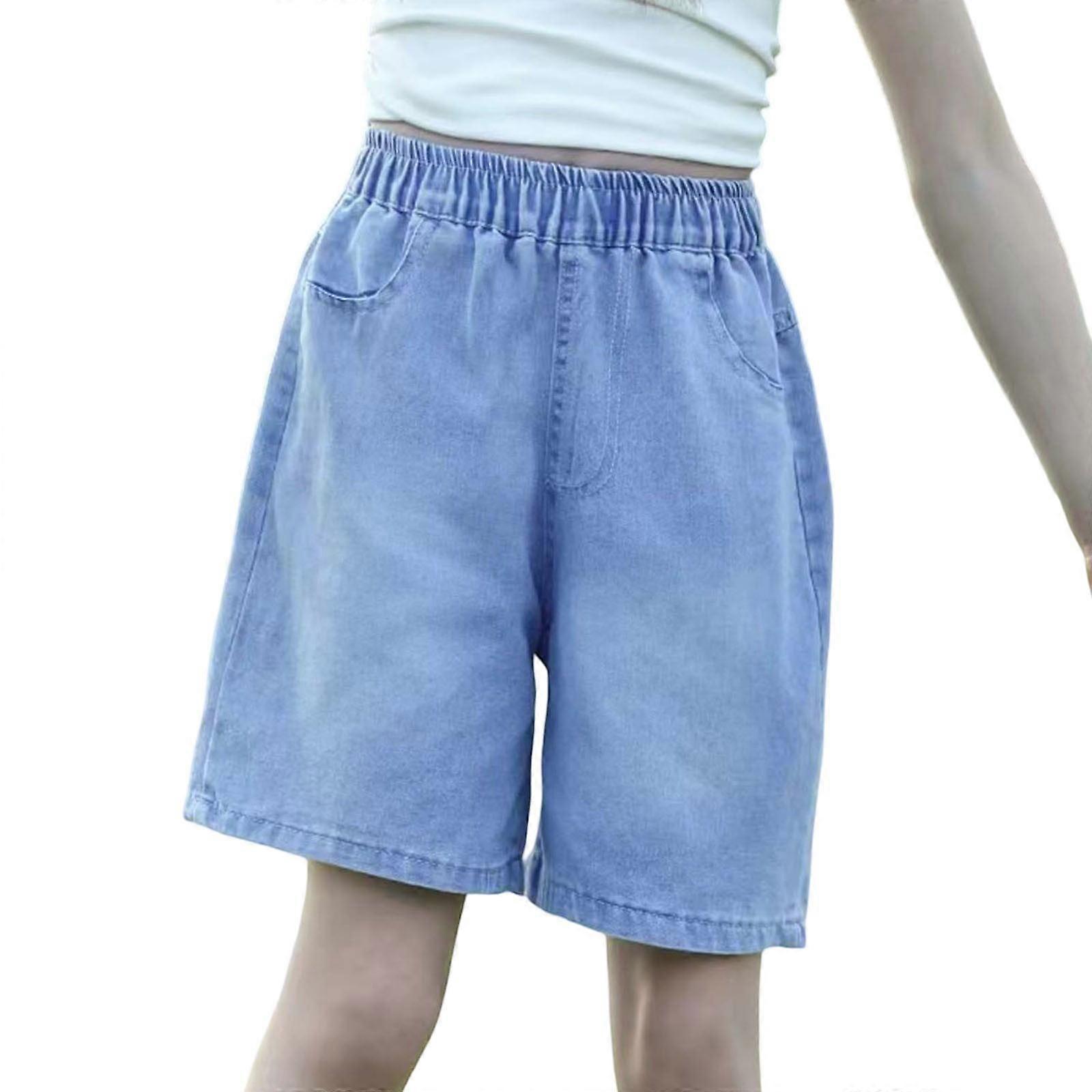 Girl Versatile Shorts Print Labeling Knee Length Jeans Stretchy Denim Shorts With Pockets Designed Cozy Trendy Playsuit