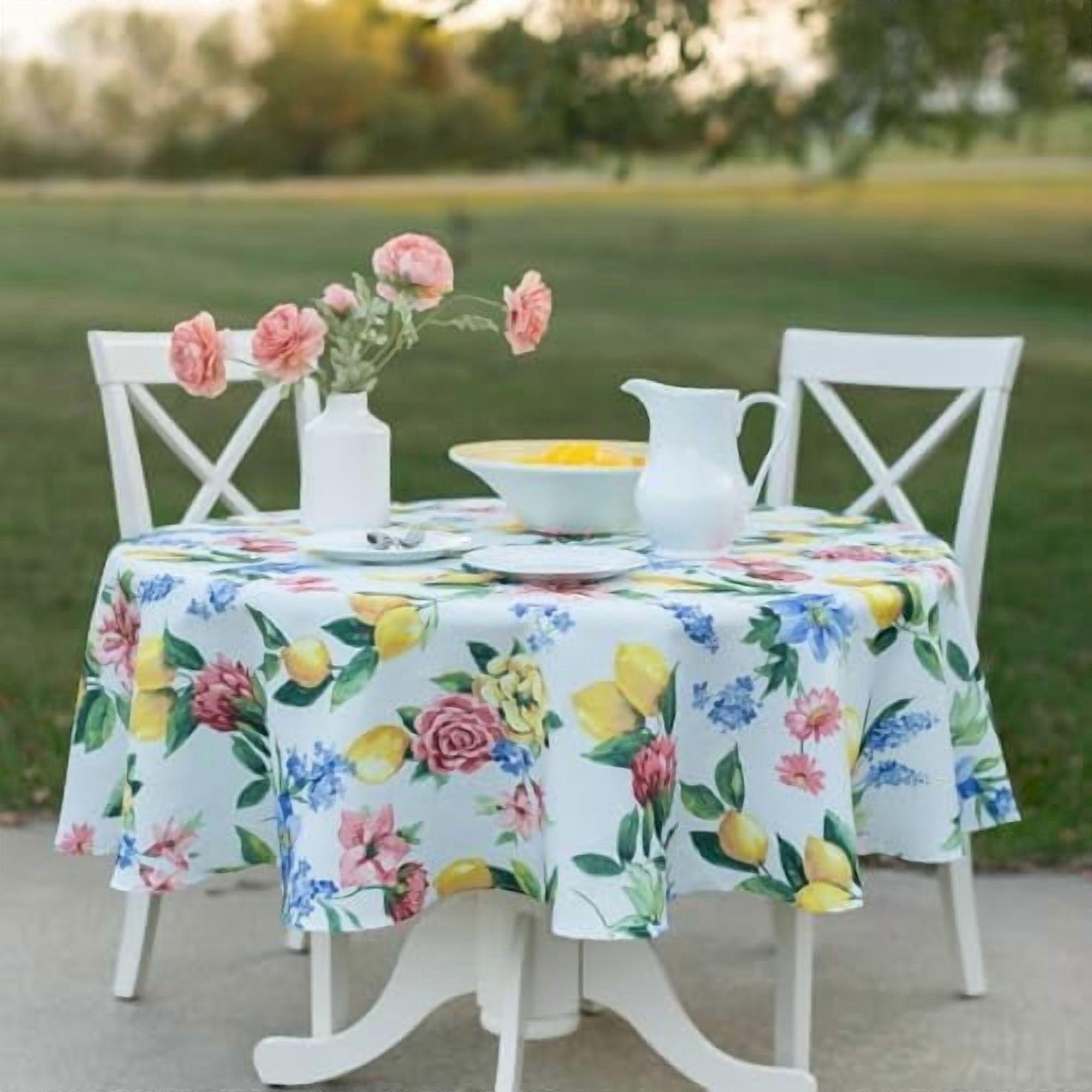 Spillproof Spring/Summer Heavyweight Indoor/Outdoor Tablecloth, Washable Round Table Cover (70", Lemon Bouquet), compatible with round tables