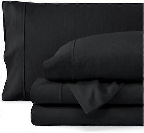 Queen Sheet Set – 1800 Thread Count Ultra-Soft Double-Brushed Microfiber, Deep Pockets, 4-Pc, Heathered Black
