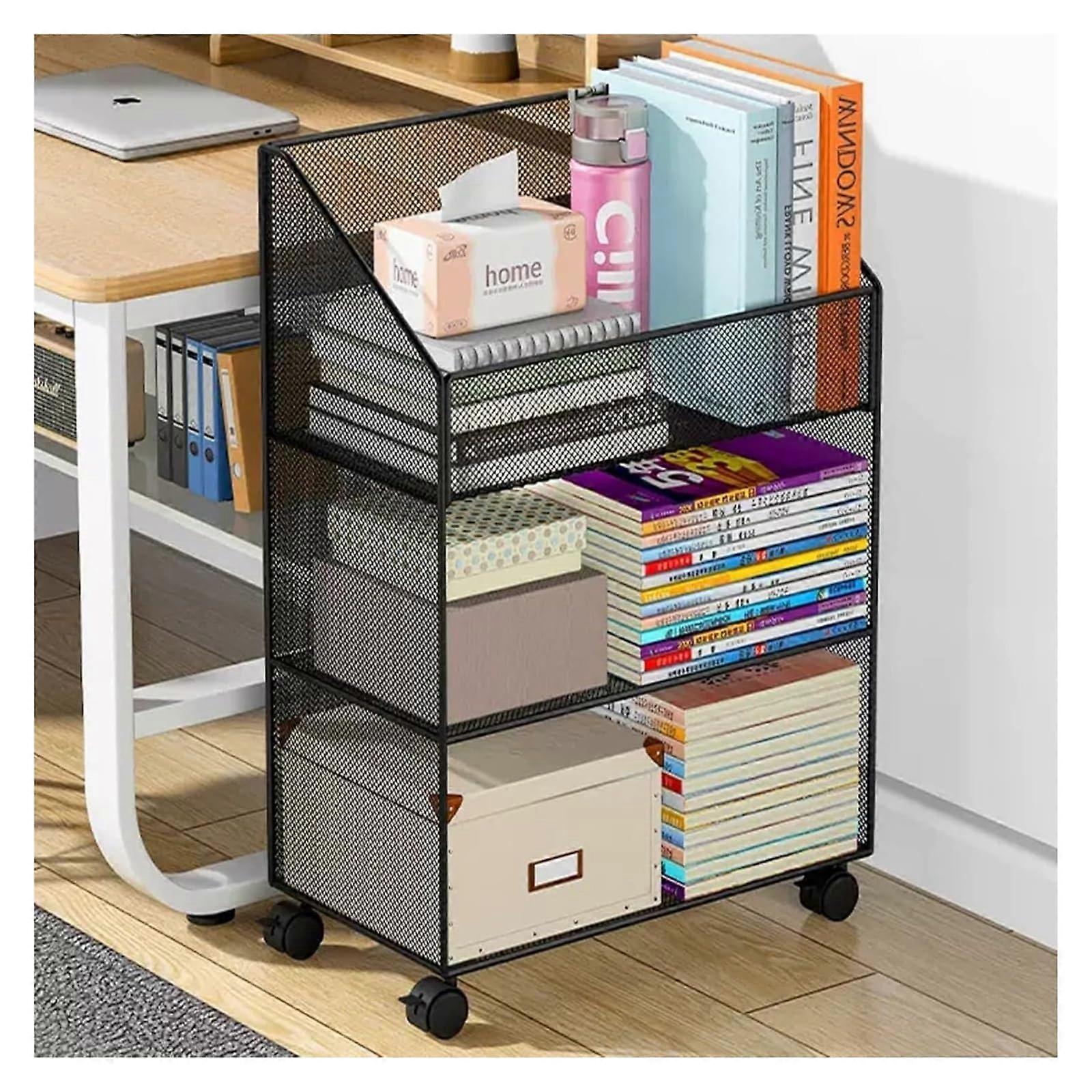 Slim Rolling Storage Cart with 360° Rotating Shelves, Mobile Bookshelf for Books, Durable Iron Frame (Black)