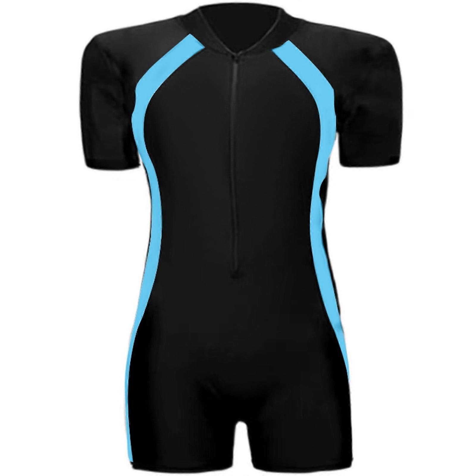 Kids Short Sleeve Swimsuit One Piece Swimwear For Boys Girls Front Zipper Short Swimsuits For Surfing Swim Lessons 7-9 Years