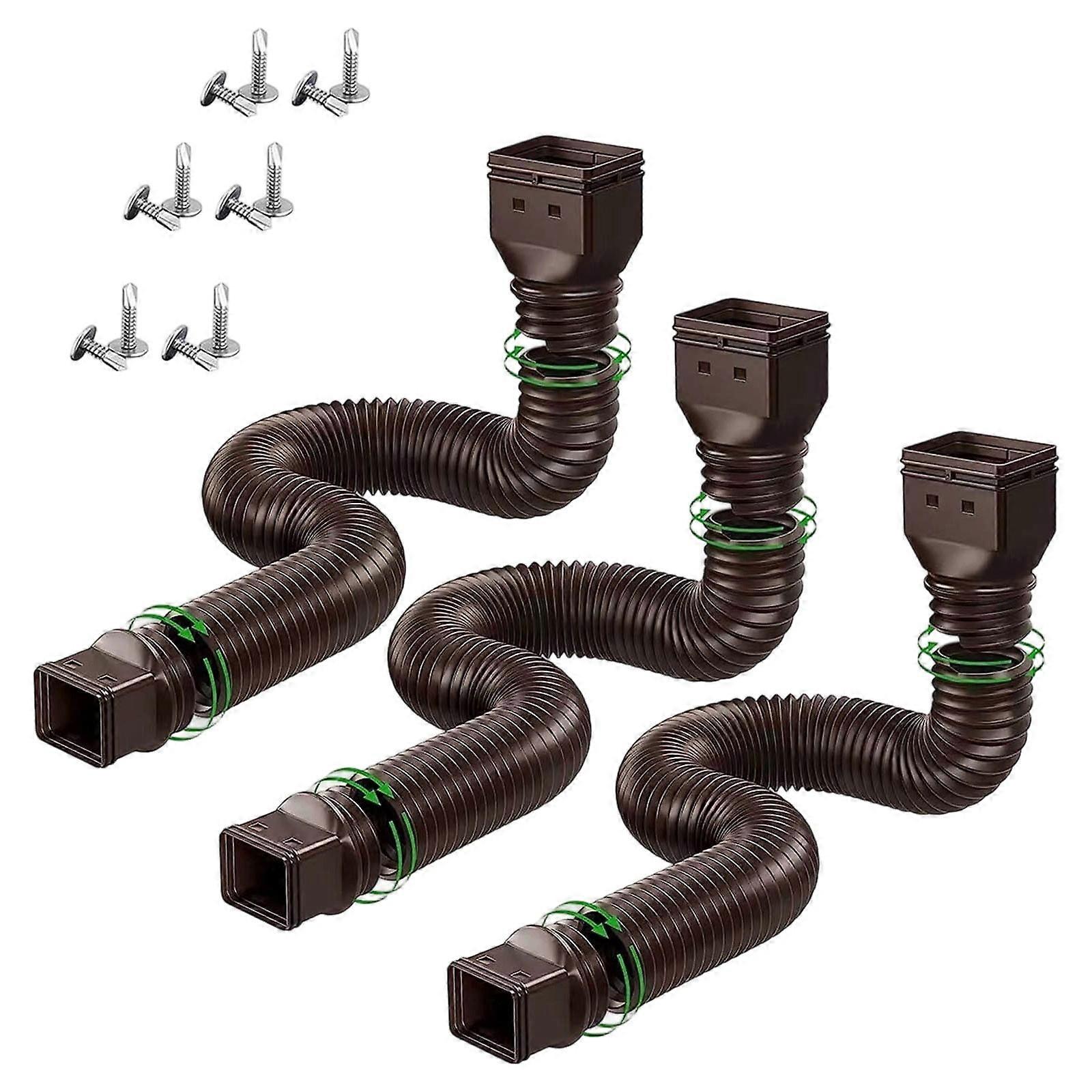 3pcs Flexible Rain Gutter Downspout Extensions, Extendable 21–60", Brown, compatible with standard gutters