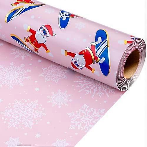 Christmas Wrapping Paper Roll, 17"x33ft, Reversible Skiing Santa/Snowflake Design, Thick Gift Wrap for Holiday, New Year & Kids – Compatible with