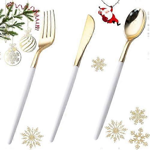 60pcs Gold/Silver Plastic Cutlery Set (20 Forks, 20 Knives, 20 Spoons) – Heavy-Duty Disposable Party Silverware, Compatible with Weddings