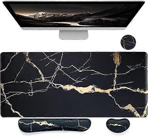 Ergonomic Mouse Pad & Keyboard Wrist Rest (4 Pcs), Non-Slip Desk Mat, Large Gaming Mousepad – Black Marble (31.5×15.7")