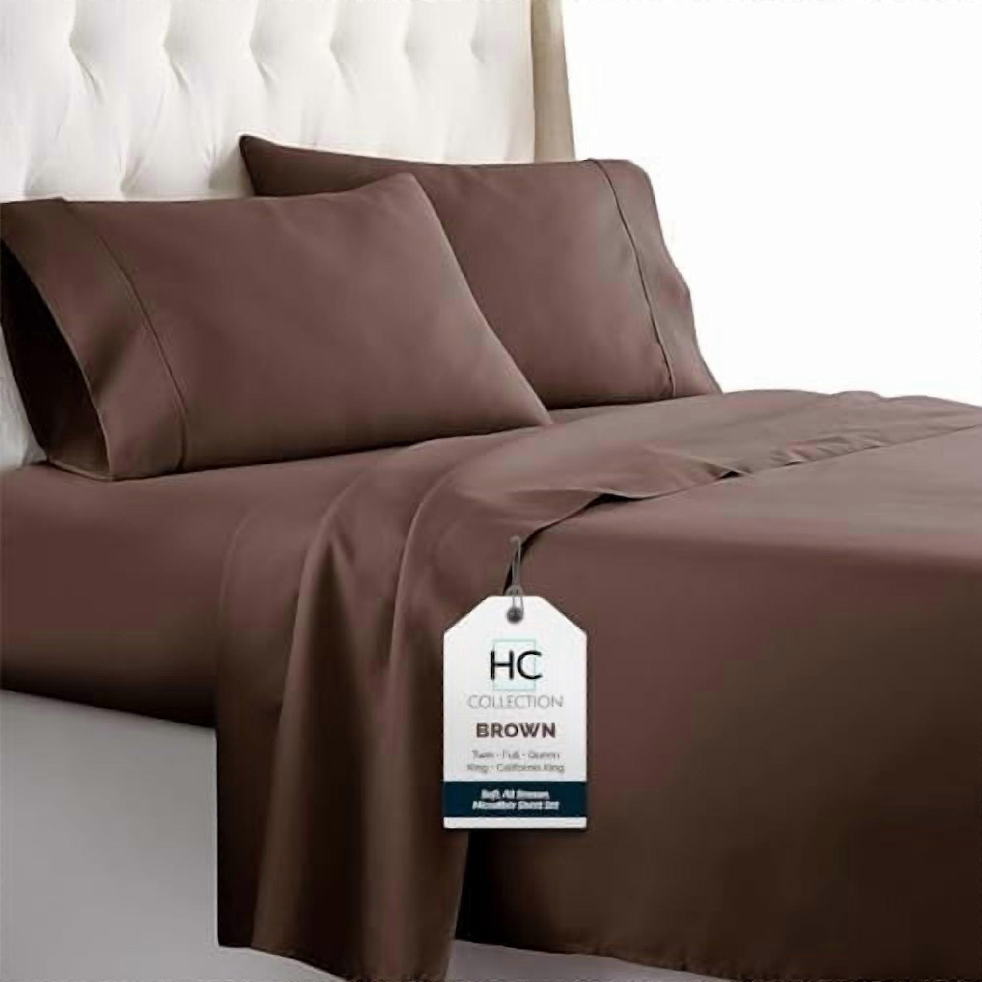 Full Size Microfiber Sheet Set, 4-Pc Hotel Luxury Platinum 1800 Series, Ultra Soft & Lightweight, Brown – Compatible with Full Beds