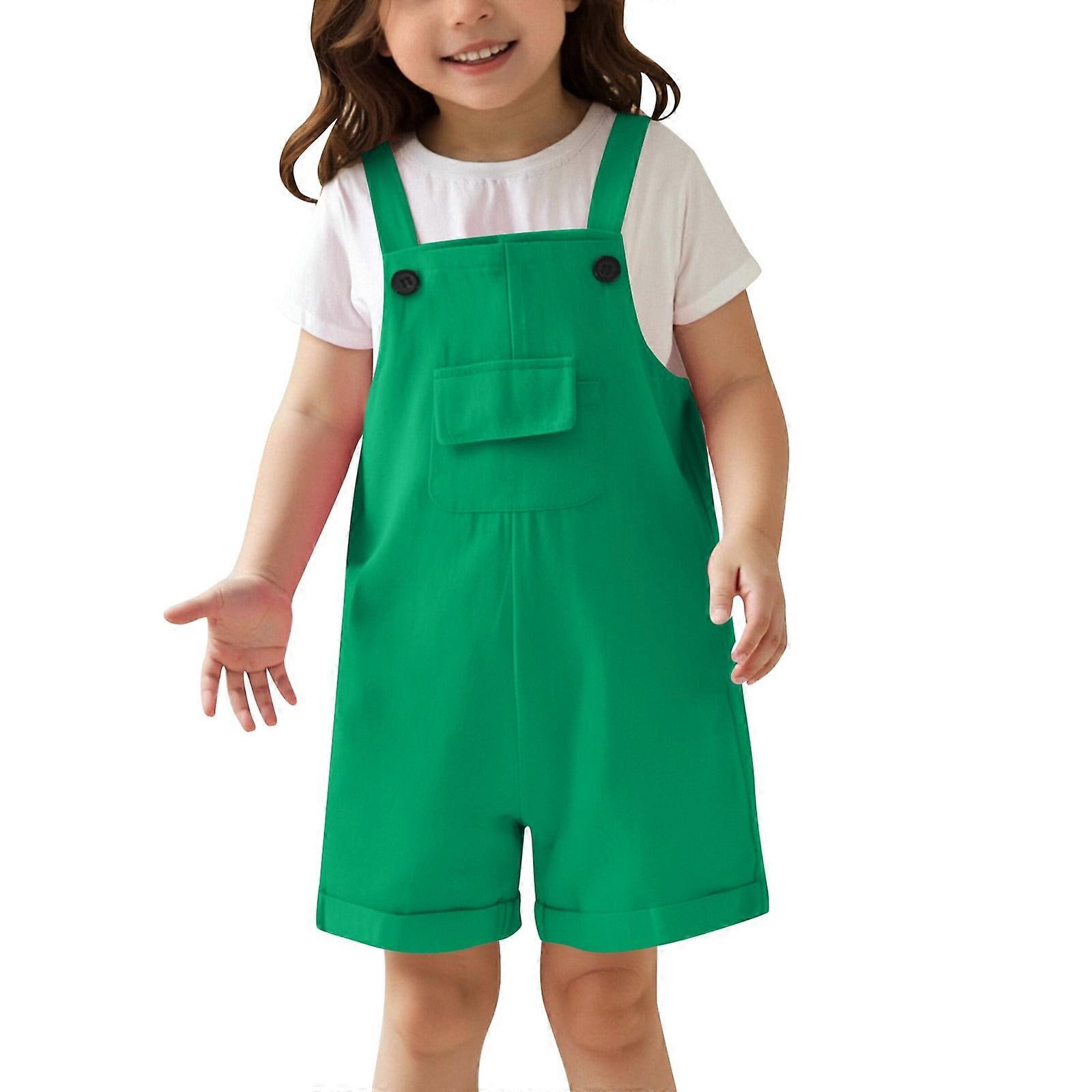 Girls Onesie Summer Casual Solid Color Adjustable Suspenders Jumpsuit With Pocket Toddler Cute Daily One-Pieces,Green,8-9 Years
