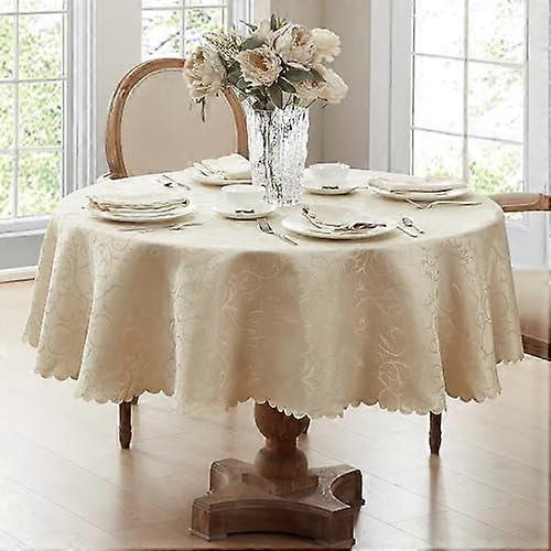Christmas Portofino Scalloped Damask Tablecloth, 70" Round, Linen, Wrinkle & Stain Resistant – Holiday Party Table Cover