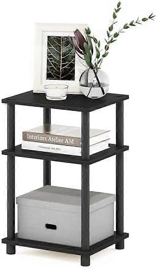 JUST Side Table, 3-Tier End Table, Open Shelves Night Stand, Bedside Table, Toolless Assembly, for Living Room, Bedroom, Bathroom, Americano