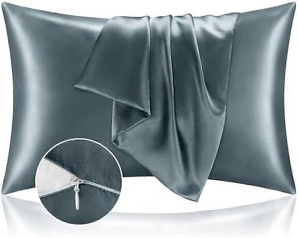 Satin Pillowcase with Zipper, Space Grey King (20x36"), Set of 2, Super Soft & Cooling, Silk-Like, Gift for Women/Men