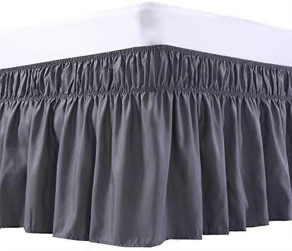 Wrap Around Bed Skirt Three Fabric Sides Elastic Dust Ruffled 16 Inch Tailored Drop,Easy to Install Fade Resistant-Dark Grey, Twin/Full