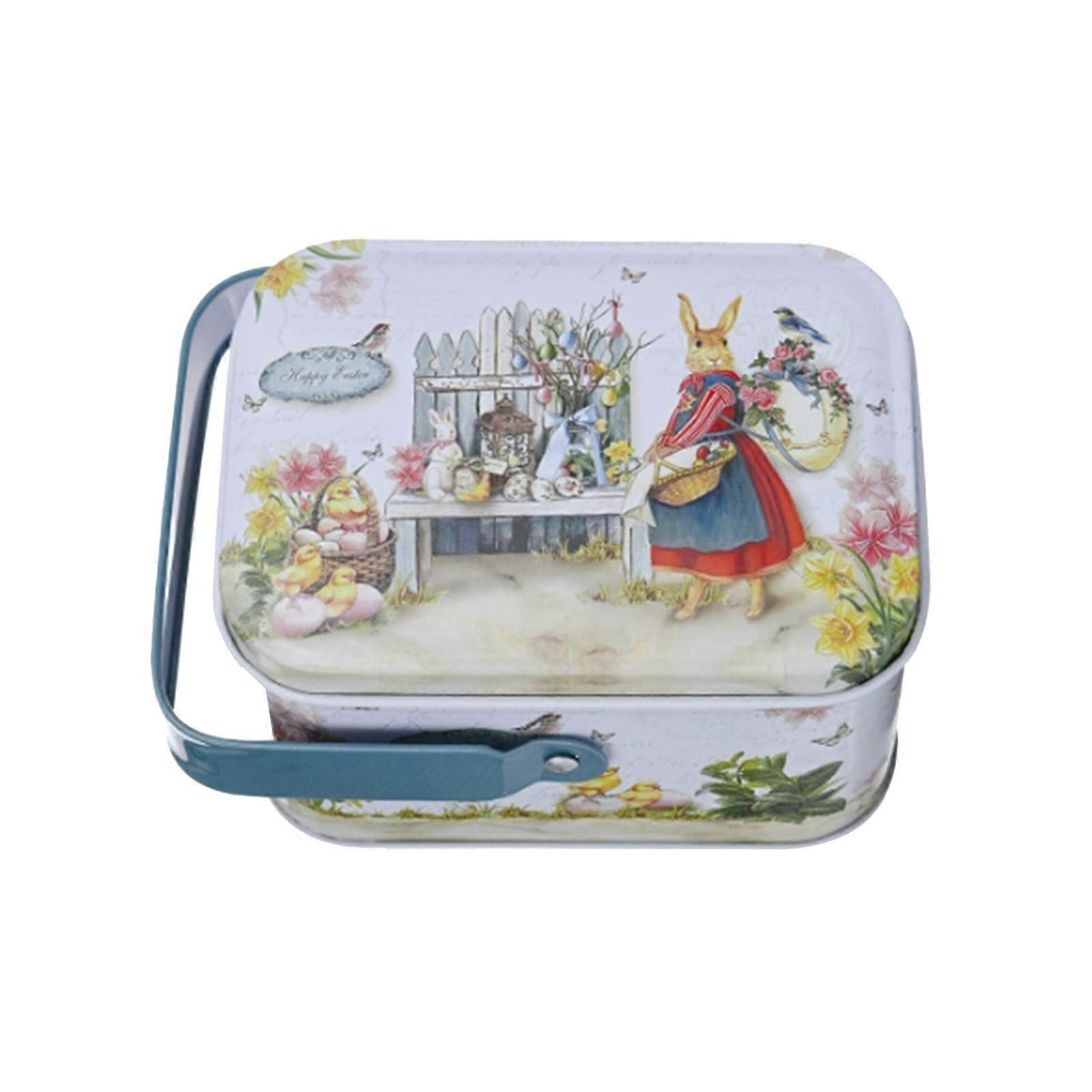Easter Candy Jar – Elegant Metal Tinplate Storage Container with Lid & Handle, Compatible with Easter Decor