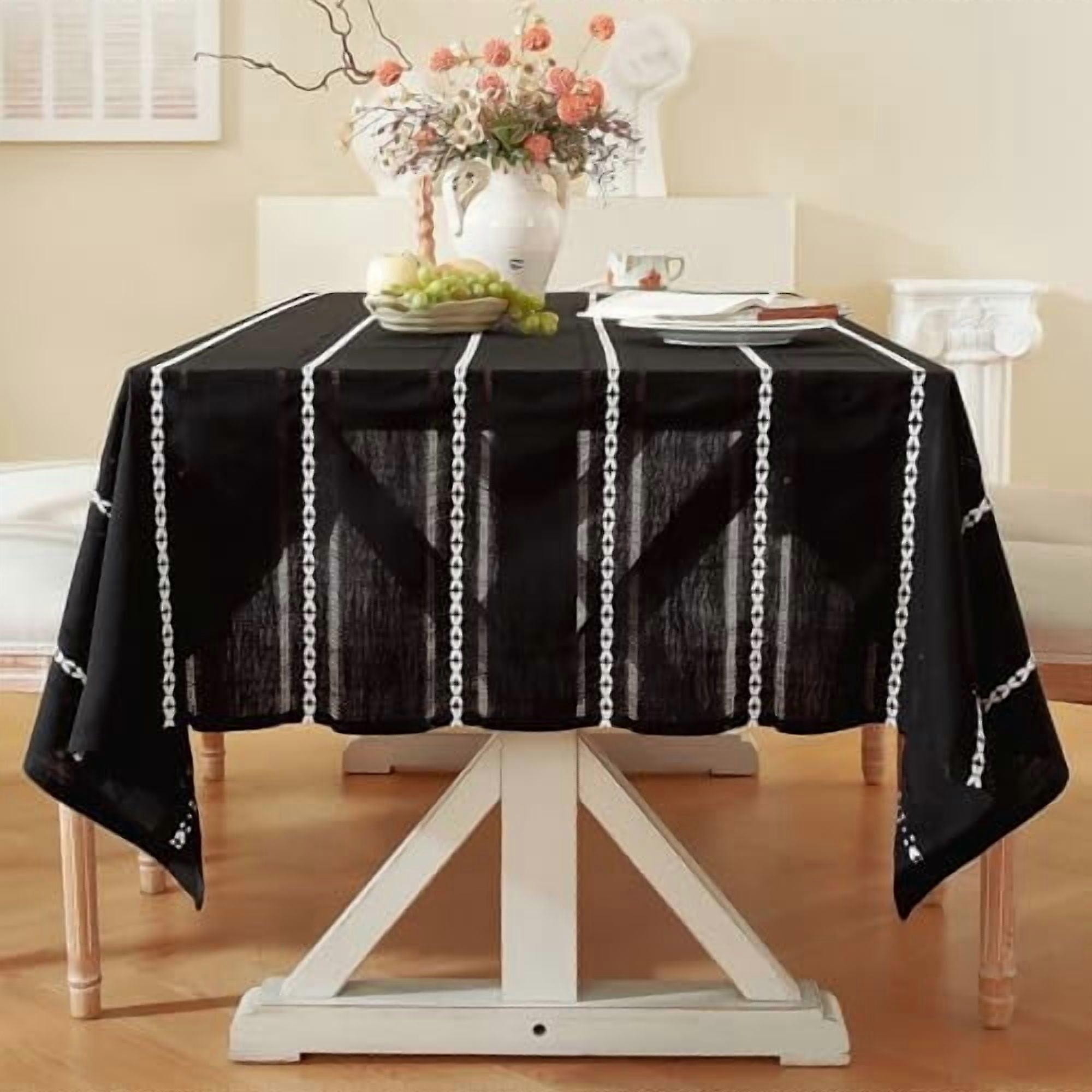 60 x 104 inches Farmhouse Style Linen tablecloths, Wrinkle Resistant Washable Dining Room Table Cloths for 6 Foot Rectangle Tables - Hemstitch Black