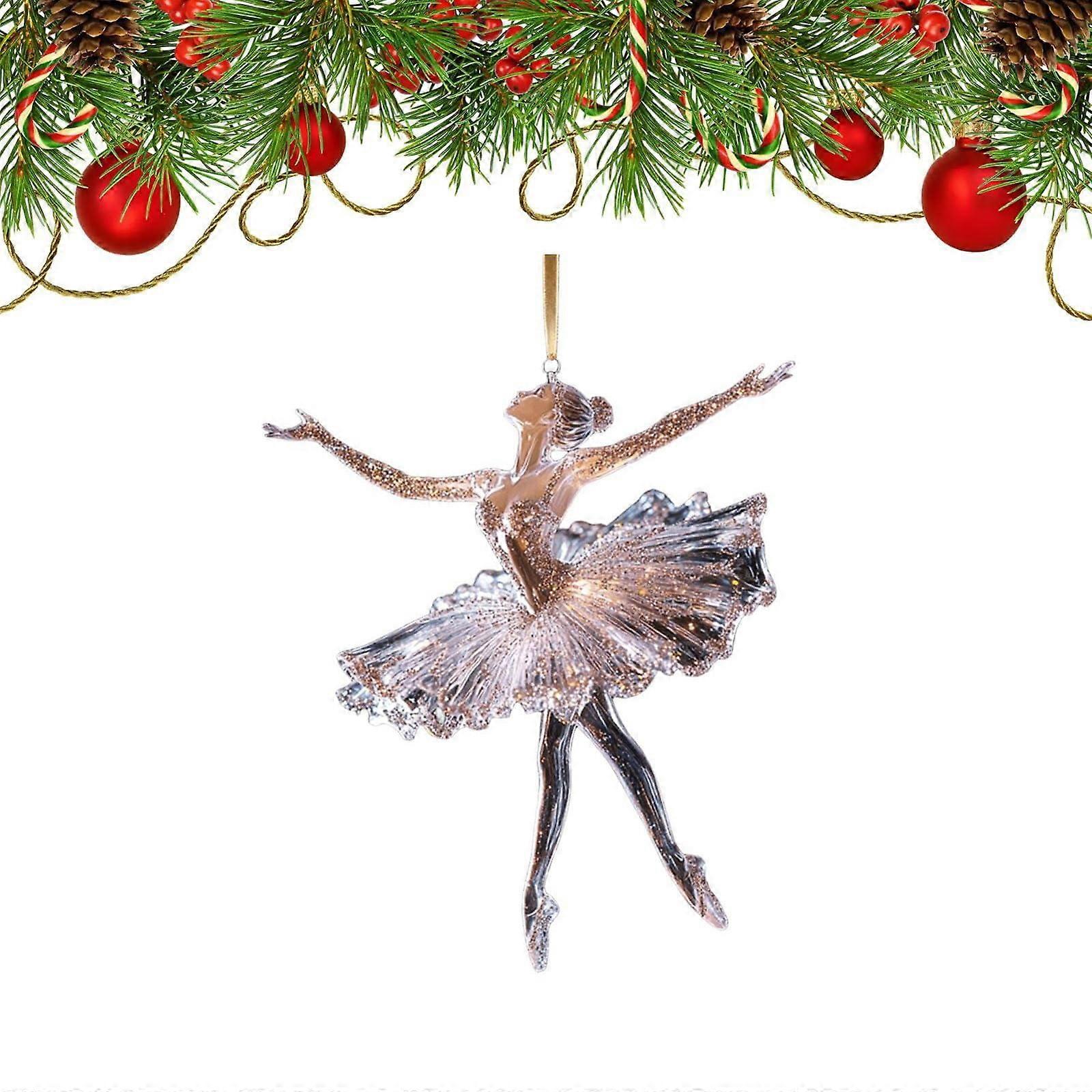 Sparkling 2D Acrylic Ballerina Ornament – Elegant Ballet Dancer Christmas Tree Decor with Gold Sequins, 3.5" Clear (Compatible with Standard Tree