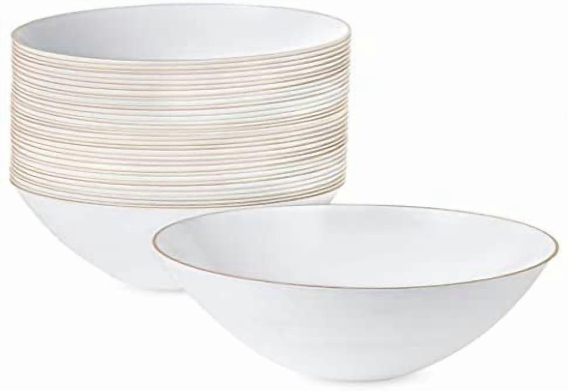 [16 OZ 20 Count] White Plastic Floral Design Party Soup bowls With Gold Rim Premium heavyweight Elegant Disposable Tableware Dishes