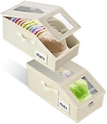 Stackable Hat Storage Boxes (2 PCS), Holds 30 Caps, Cardboard, Clear Window, Beige, Compatible with Closet