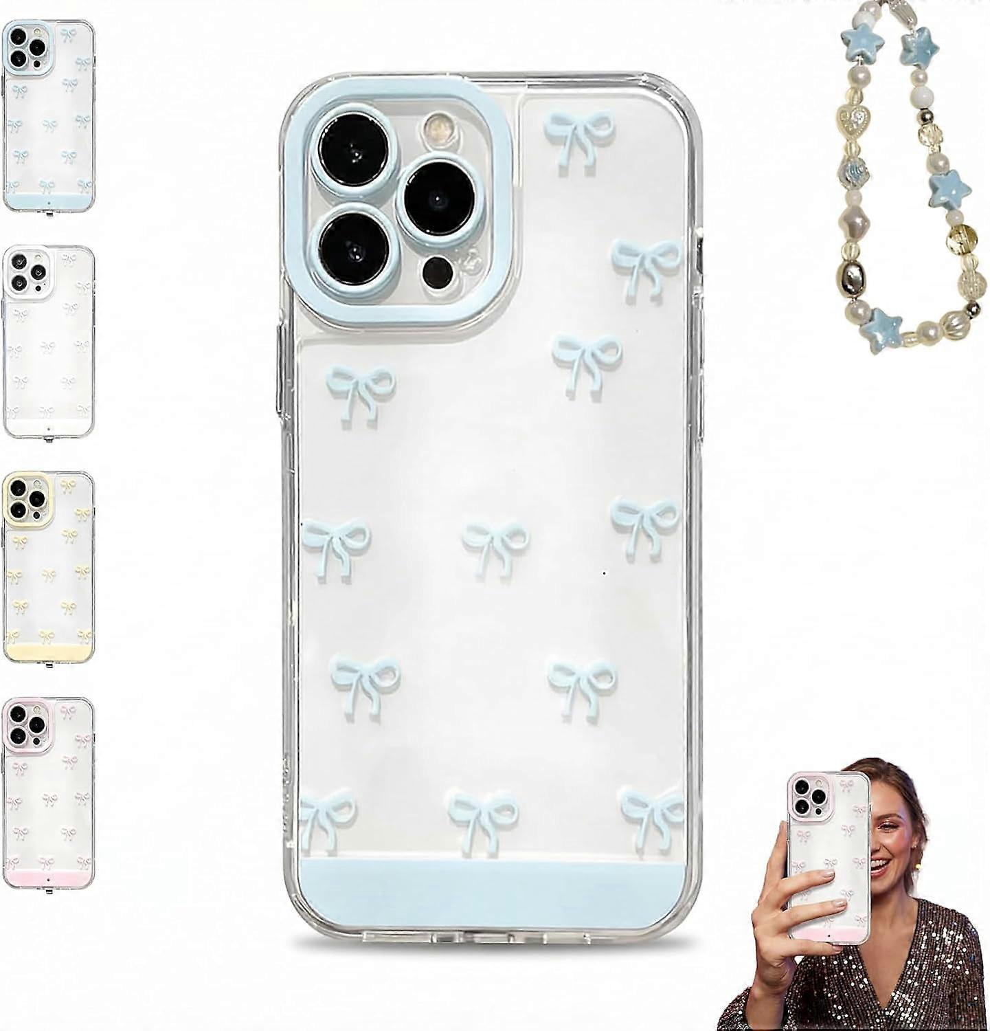 Vibrant LED Bowknot Phone Case—compatible with iPhone 11–17 Pro/Pro Max, incoming call flash, raised bezel, colorful glow (Blue)