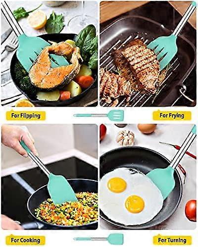 2-Pack Silicone Solid Turners, Non-Stick, Heat-Resistant, BPA-Free Spatulas for Fish/Eggs/Pancakes (Green)