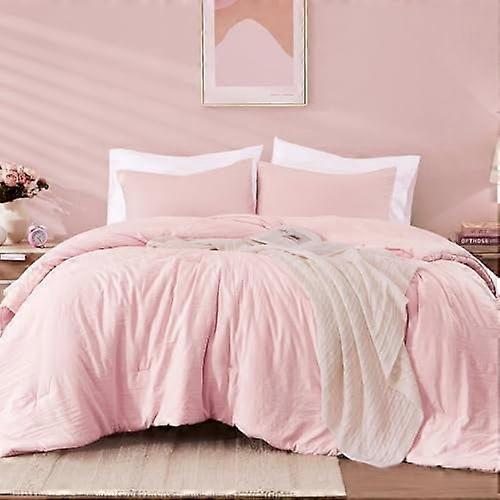 Full Size Comforter Set – 3-Pc Soft Pink, Prewashed, Lightweight All-Season, Down Alternative with 2 Shams