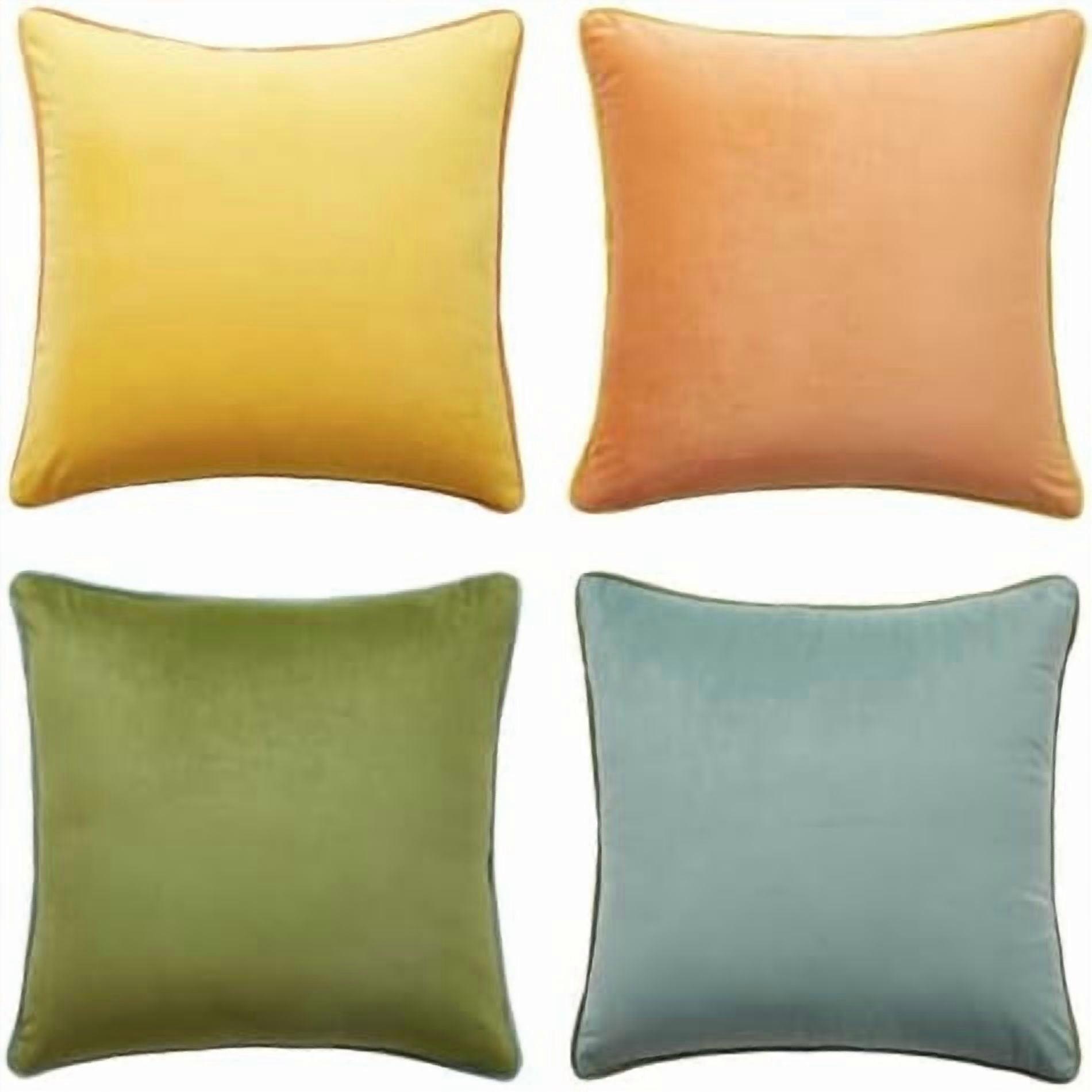 Set of 4 Soft Velvet Throw Pillow Covers (20x20"), Double-Sided, Yellow/Green, Modern Home Decor – Inserts Not Included