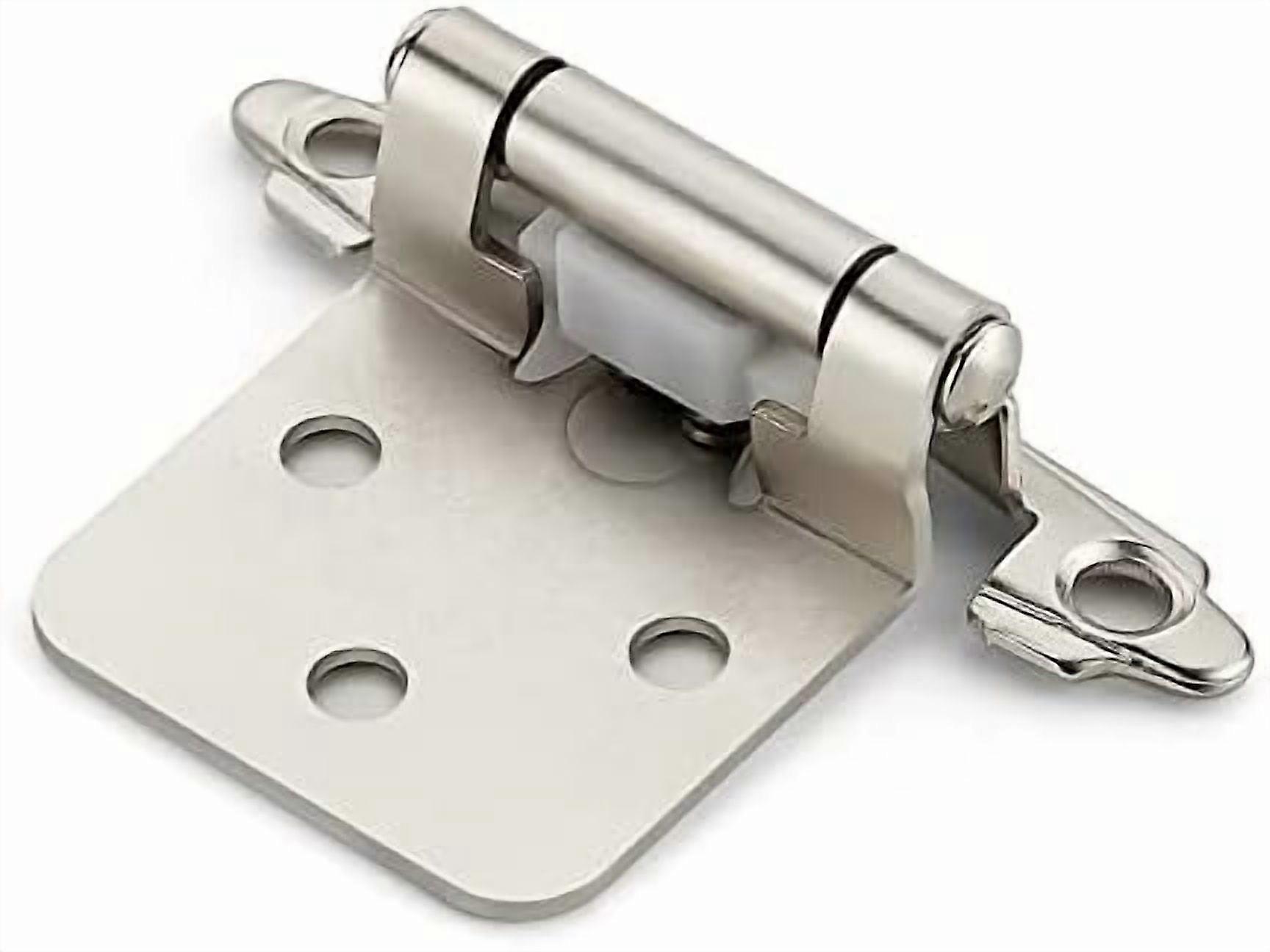 50-Pack (25 Pairs) 1/2" Overlay Self-Closing Semi-Concealed Cabinet Hinges, Satin Nickel, with Door Bumpers – Compatible with Standard Cabinets