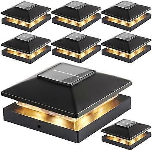 Solar Post Cap Lights 8pk, Black Waterproof, Fit 4x4 Wood/Vinyl Posts, Warm White – Compatible with Outdoor Deck, Patio, Porch, Fence