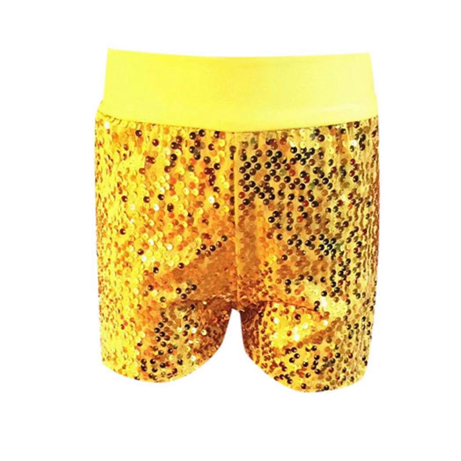 Girl Boy Performance Shorts Slim Fit Stretch Elastic Waist Sequin Shorts Girls Stylish Picnic Shorts,Yellow,7-11 Years