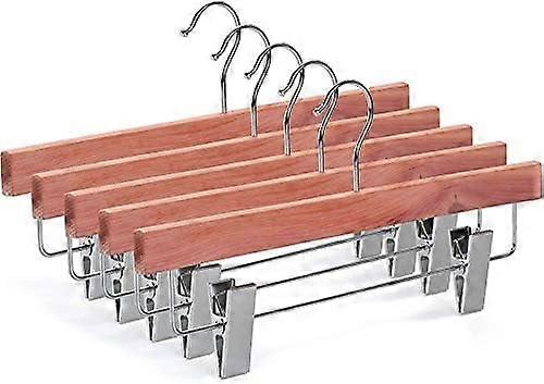 10-Pack Cedar Wood Pants Hangers w/ Metal Anti-Wrinkle Clips & 360° Chrome Hooks, CT07P